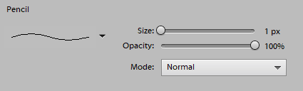 - Velg blyantverktøy og sett størrelsen til 1 px og opasitet til 100 %