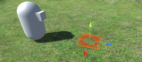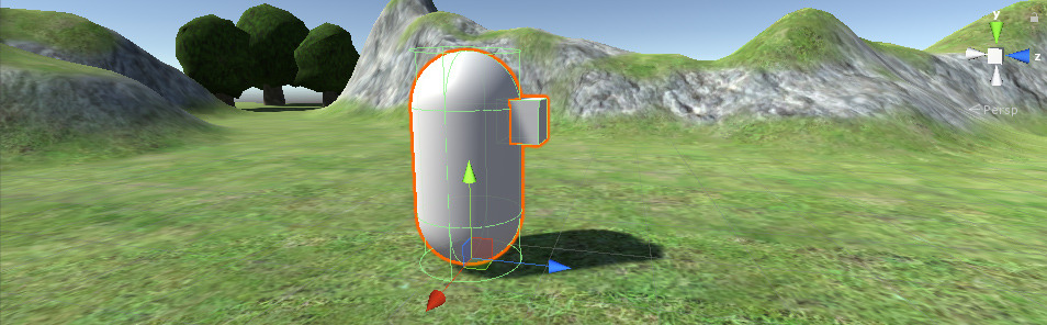 - Legg til en spillerkropp (i mitt tilfelle vil jeg bruke en enkel kapsel med en kube, men du kan legge til en spillermodell hvis du har noen). Skaler den ned til ønsket størrelse.