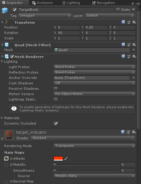 - Neste er å lage en målindikator prefab. Dette er bare et enkelt GameObject med en Quad som vil indikere hvor vi har klikket på kartet.