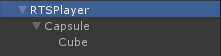 - Flytt spillermodellen inne i 'RTSPlayer' GameObject (MERK: Før du blir foreldre, sørg for at 'RTSPlayer' er plassert nederst på spillermodellen)