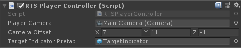 - Og til slutt, velg 'RTSPlayer' og tilordne alle nødvendige variabler i RTSPlayerController-skriptet: