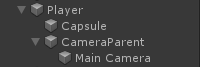 - Lag et nytt GameObject og navngi det "CameraParent" og flytt det inn i "Player"-objektet, endre dets posisjon til (0, 1.64, 0)