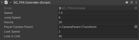 }- Fest SC_TPSController-skriptet til "Player"-objektet (Du vil legge merke til at det også la til en annen komponent kalt Character Controller. Endre senterverdien til (0, 1, 0))